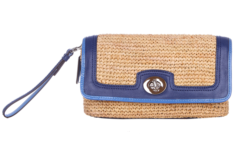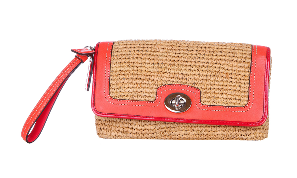 Coach Straw Large Flap Clutch Handbag: